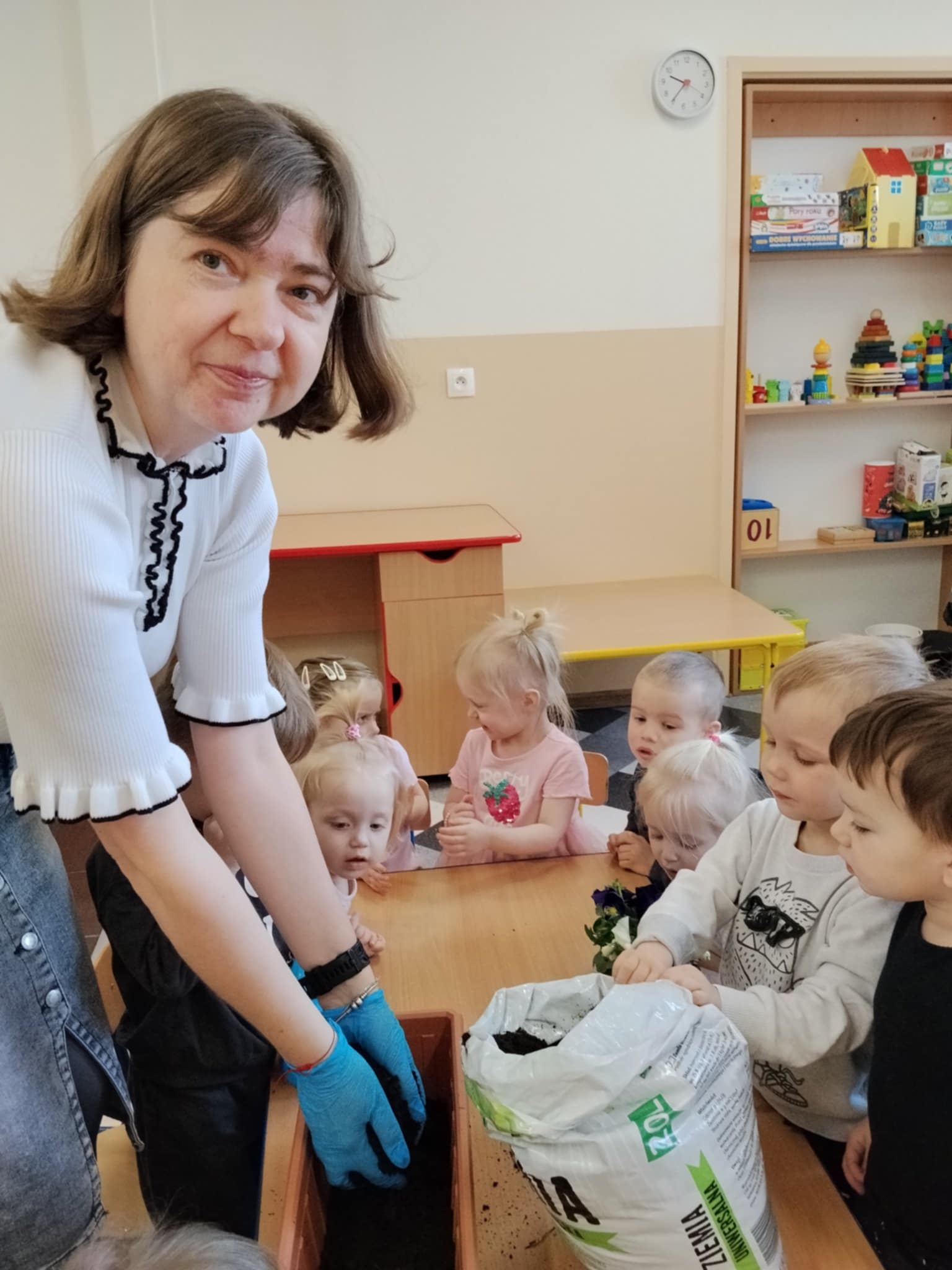 Podczas zajęć dzieci rozwijały sprawność manualną oraz uczyły się troski o rośliny. Nie zabrakło uśmiechu i dobrej zabawy.